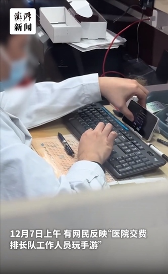 ·上海華山醫(yī)院收費(fèi)窗口員工上班時(shí)玩手游?院方稱已暫停其工作。