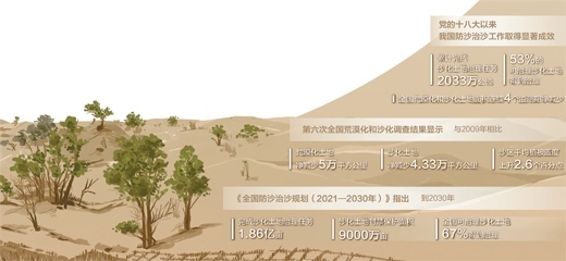 如今,烏蘭布和沙漠林草覆蓋度從上世紀(jì)50年代初期的0.04%提高到37.2%,呈現(xiàn)出“整體好轉(zhuǎn)、改善加速”的良好態(tài)勢,正在實現(xiàn)從“沙進人退”向“綠進沙退”的轉(zhuǎn)變。