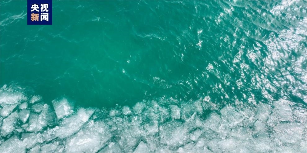 青海湖,湖面上翻涌著的“碎水晶”如一塊塊拼圖,漂浮在湖面,無(wú)邊無(wú)際,銀光閃閃似水晶。