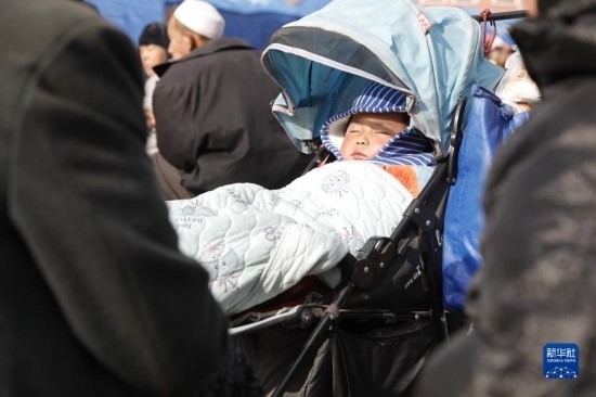 12月19日,在甘肅臨夏積石山縣大河家鎮(zhèn)大河村,小朋友在安置點(diǎn)睡午覺。