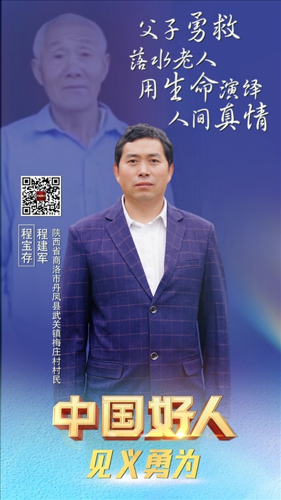 程寶存,男,1953年8月生;程建軍,男,1978年6月生。二人為父子關(guān)系,系陜西省商洛市丹鳳縣武關(guān)鎮(zhèn)梅莊村村民。2021年9月,父子兩人協(xié)力救助落水老人,父親程寶存不幸被水沖走獻(xiàn)出了寶貴生命。程建軍說(shuō):“這件事誰(shuí)遇到都會(huì)去做的,我相信我爸也不會(huì)后悔自己的選擇。”