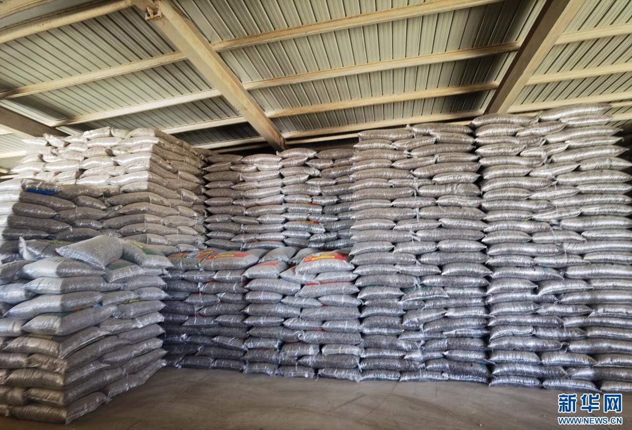 ??紅泥井村糧油交易綜合市場(chǎng)葵花籽庫(kù)房一角。新華網(wǎng)郝芳芳攝