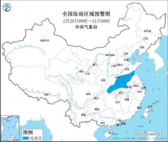 預(yù)計(jì),2月20日08時(shí)至21日08時(shí),河南中南部、山東南部、安徽北部、湖北北部和西部等地的部分地區(qū)有凍雨或冰粒,凍雨量1~5毫米,局地7毫米以上。