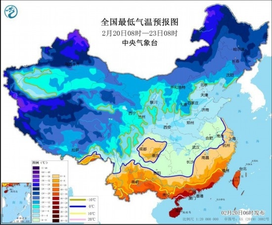 中新網(wǎng)2月20日電 據(jù)中央氣象臺(tái)網(wǎng)站消息,中央氣象臺(tái)2月20日6時(shí)繼續(xù)發(fā)布寒潮色預(yù)警:受寒潮影響,預(yù)計(jì),2月20日至2月23日,我國(guó)中東部大部將自北向南先后出現(xiàn)降溫,日平均或最低氣溫普遍下降8~12℃,華北南部、黃淮西部、江淮、江漢、江南、華南中北部及貴州等地氣溫將下降12~18℃,其中,湖南南部、貴州東部、廣西北部等地的部分地區(qū)累計(jì)降溫幅度可達(dá)20℃以上。2月23日前后,最低溫度0℃線將南壓到蘇皖南部至湖南南部、貴州南部一帶。