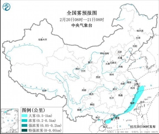 預(yù)計(jì),20日白天至夜間,東海西部海域、浙閩沿岸海域、臺(tái)灣海峽、廣東沿岸海域、廣西沿岸海域?qū)⒂写箪F,能見(jiàn)度不足1公里。此外,20日早晨至上午,浙江東南部、廣東東南部等地將有大霧天氣,局地有能見(jiàn)度不足500米的濃霧。