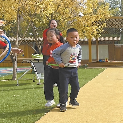 孩子們在雙青第四幼兒園操場上做游戲。盛康園社區(qū)供圖