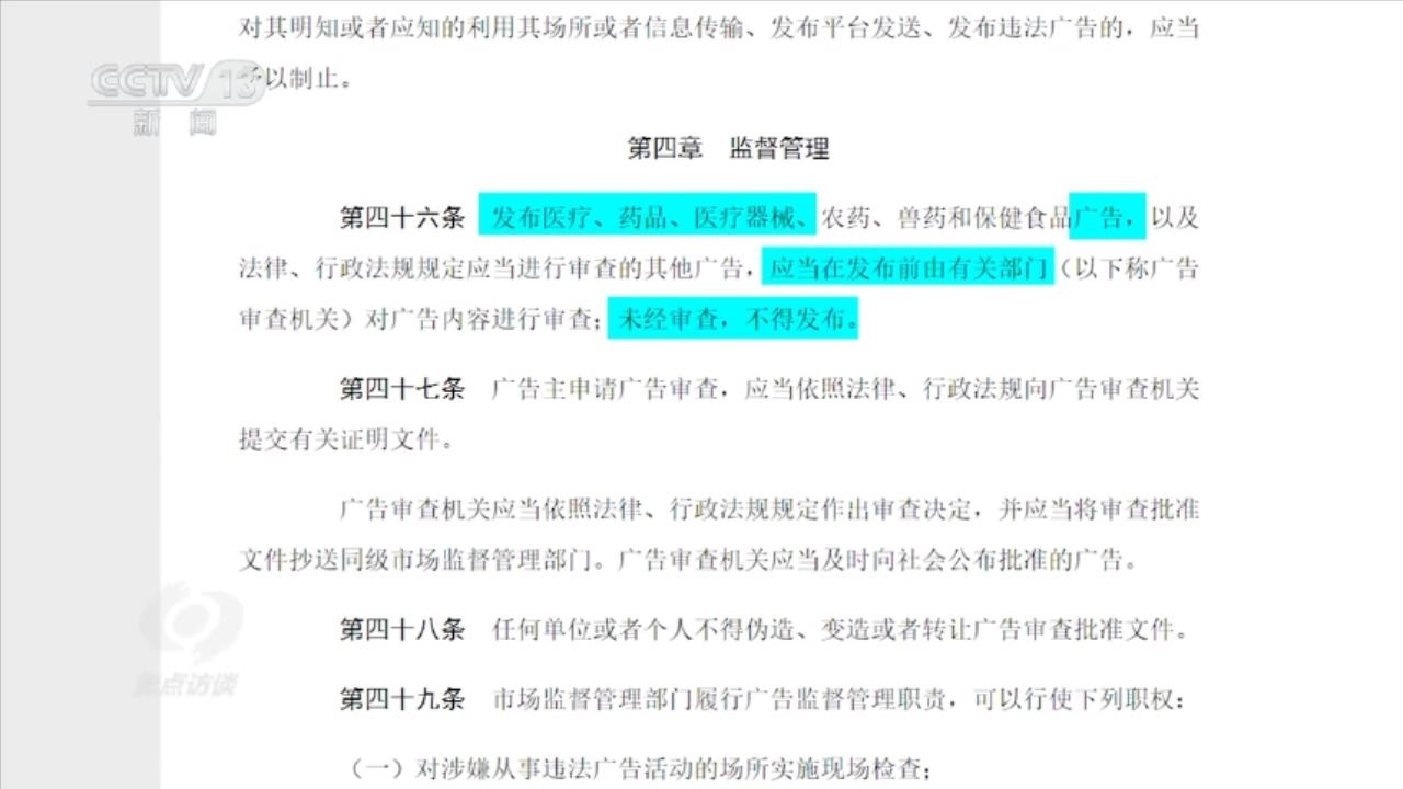 按照我國廣告法第四十六條的規(guī)定,發(fā)布醫(yī)療、藥品、醫(yī)療器械等廣告,應(yīng)當(dāng)在發(fā)布前由有關(guān)部門對廣告內(nèi)容進(jìn)行審查;未經(jīng)審查,不得發(fā)布。也就是說,醫(yī)療廣告應(yīng)當(dāng)取得相應(yīng)的《醫(yī)療廣告審查證明》才能上線。但記者調(diào)查發(fā)現(xiàn),這些醫(yī)美直播帶貨作為一種醫(yī)療廣告均未獲得《醫(yī)療廣告審查證明》。