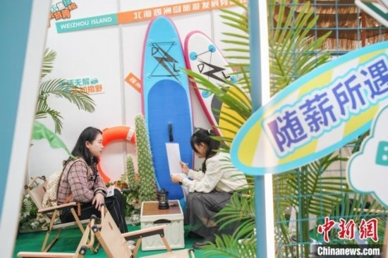 綠植、鮮花、槳板、布氏鯨、海島咖啡……廣西北海市潿洲島旅游區(qū)的招聘展臺(tái)呈現(xiàn)了一個(gè)微縮版的景區(qū)場景,當(dāng)日吸引2100人現(xiàn)場面試。