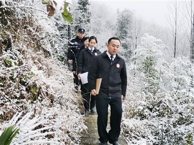 寒冷的冬日,重慶市云陽縣人民法院江口人民法庭的干警驅(qū)車來到沙市鎮(zhèn)新橋村,將一起侵權(quán)糾紛案件的傳票送到原、被告家中。送達路上,雪越下越大,車越開越慢,平日里半個小時的車程足足行駛了一個多小時。