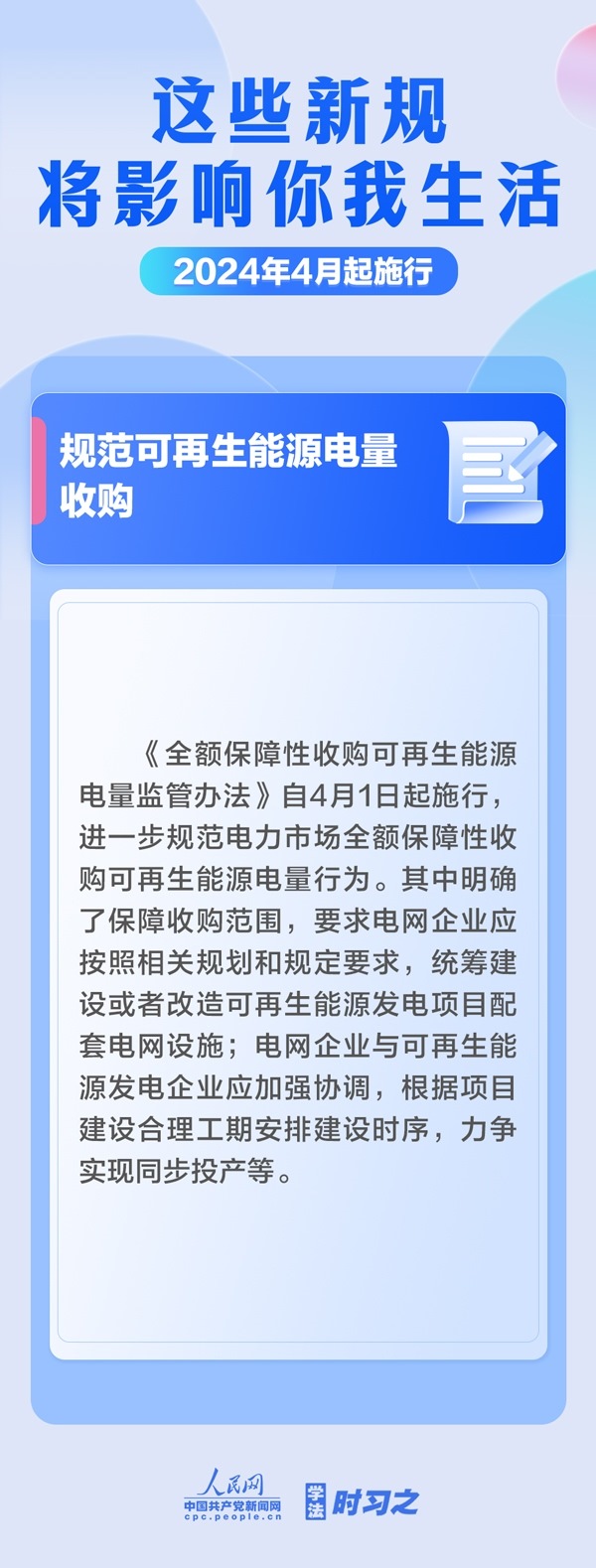 加強(qiáng)中央儲(chǔ)備棉管理;明確托育機(jī)構(gòu)質(zhì)量評(píng)估標(biāo)準(zhǔn);規(guī)范可再生能源電量收購(gòu)……4月起,這些新規(guī)施行,將影響你我生活。