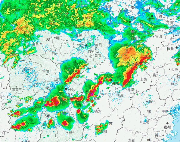 今天,南昌等地對流云團(tuán)一波接一波。圖:中央氣象臺
