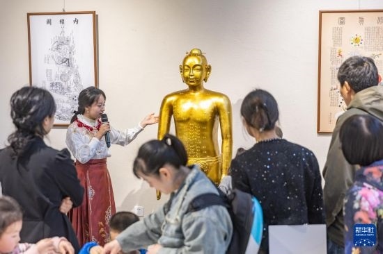 4月6日,醫(yī)生志愿者在“百草創(chuàng)藝”中醫(yī)藥藝術(shù)作品展現(xiàn)場(chǎng)為觀眾講解中醫(yī)藥文化知識(shí)。