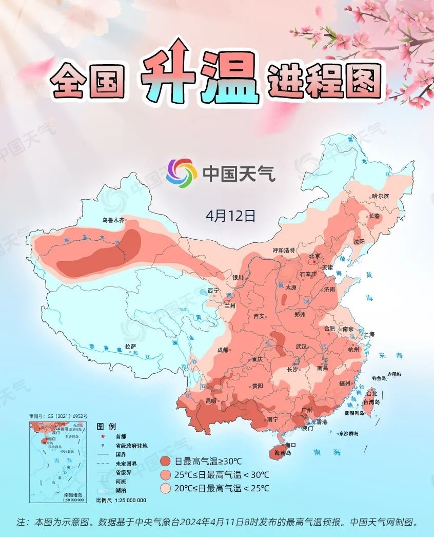 眼下,全國(guó)大部處于冷空氣影響間歇期,升溫是主旋律。預(yù)計(jì)今起三天(4月11日至13日),我國(guó)從北到南都將開啟回暖進(jìn)程,最高氣溫25℃以上的區(qū)域幾乎覆蓋整個(gè)中東部,波及20余省份,東北、西北地區(qū)氣溫將大面積創(chuàng)今年以來(lái)新高,北方不少地方還會(huì)體驗(yàn)到常年5月中旬才有的超前暖熱。中國(guó)天氣網(wǎng)推出全國(guó)升溫進(jìn)程圖,看看哪些地方將沖擊30℃。