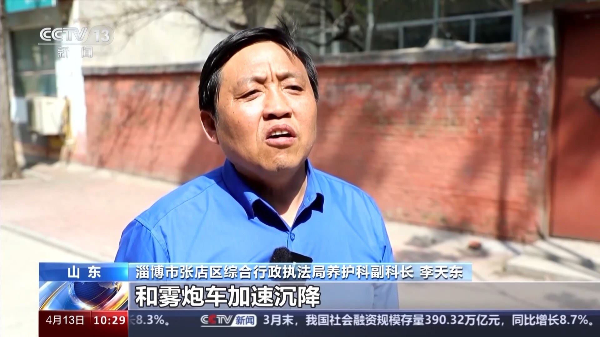 山東淄博市張店區(qū)綜合行政執(zhí)法局養(yǎng)護科副科長 李天東:物理防治就用高壓水車噴淋和霧炮車加速沉降,再就是機掃車和人工結合及時清理。化學防治方面主要是采用雌株體花芽抑制劑減少花芽分化。