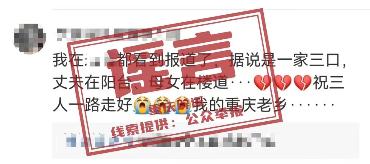 央視網(wǎng)消息:據(jù)重慶市互聯(lián)網(wǎng)違法和不良信息舉報(bào)中心視頻號(hào)“重慶辟謠”消息,網(wǎng)傳“重慶一家人全部上吊而死”為謠言,系網(wǎng)民拼湊、杜撰的虛假信息。