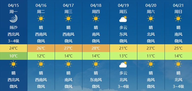 根據(jù)氣象部門預(yù)報(bào),本周天氣以晴和多云為主,氣溫總體回升,周四白天最高氣溫預(yù)計(jì)將達(dá)到28℃。天氣條件總體適宜出行,晝夜溫差仍較大,還需注意適時增減衣物,謹(jǐn)防感冒。