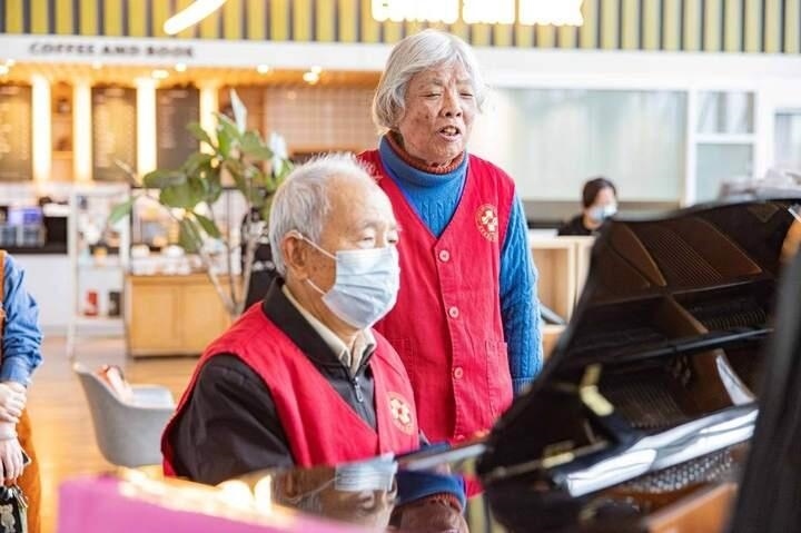 15日,在浙江臺州恩澤醫(yī)院門診大廳,患者們步履匆匆,神情嚴(yán)肅。大廳角落里,一位頭發(fā)花白、精神矍鑠的老人端坐在鋼琴前彈奏,悠揚的樂聲吸引不少患者駐足欣賞。
