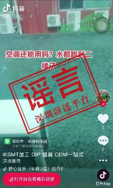 央視網消息:據“深圳網絡辟謠”微信公眾號消息,4月21日上午,有網帖稱深圳“寶安區(qū)華旭科技園由于雨水過大,二樓存在大量積水”,短視頻顯示的地點是“寶安區(qū)華旭科技園”。據向應急部門核查了解,信息不實,該科技園并沒有發(fā)生網帖所稱大量積水的情況。