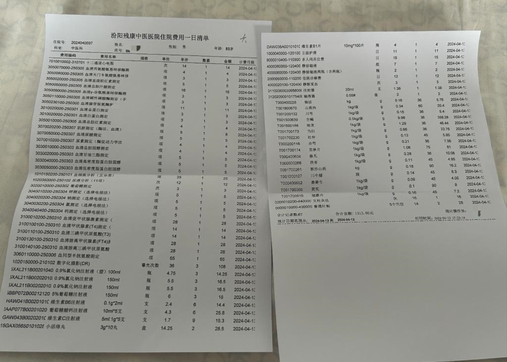 之后,在這名老人當(dāng)日的“住院費用一日清單”上,憑空出現(xiàn)了“心電圖”“血液檢測”“尿液分析”等多個并沒有進(jìn)行檢查的檢測項目,總計花費1313.86元。“實際檢查也就300塊錢左右?!币晃粌?nèi)部人士透露。