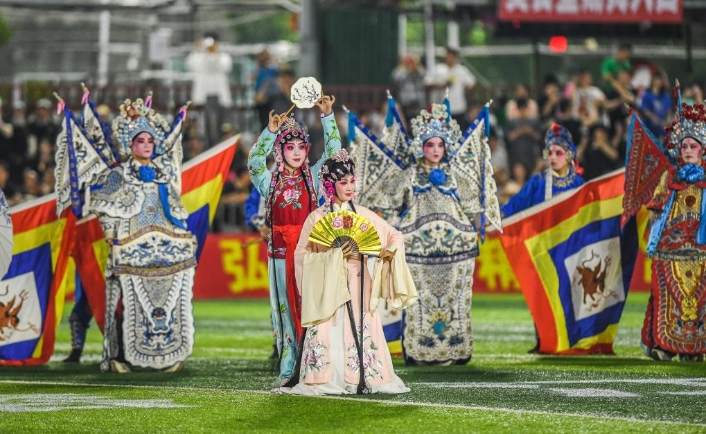 遼寧東港草莓足球隊(duì)帶來(lái)嗩吶表演、中山大學(xué)鳳慶滇紅茶足球隊(duì)帶來(lái)蘆笙舞、畢節(jié)南山羊肉粉足球隊(duì)帶來(lái)彝族舞蹈……在“帶著非遺上村超”“來(lái)村超約場(chǎng)球”等活動(dòng)的聚力匯智作用下,榕江攜手各地推動(dòng)了“村超”流量的共建共享。