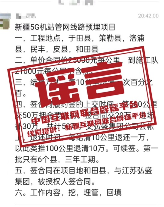 真相:近期,個別網民謊稱中標“新疆5G機站管網線路預埋項目”“中國移動公司5G通信管網改造和田地區(qū)施工項目”等,并以項目轉(分)包為名實施詐騙活動。對此,中國移動通信集團新疆有限公司和田地區(qū)分公司回應,該公司不存在上述建設項目,項目相關信息均為虛假信息。目前,和田地區(qū)分公司所有采購項目均通過中國移動采購與招標網組織實施招投標采購工作,信息公開透明可查詢。同時,依據《民法典》《建筑法》等法律規(guī)定,公司明確禁止工程建設項目中標單位轉包、非法分包中標項目。(來源:“新疆網絡辟謠”微信公眾號)