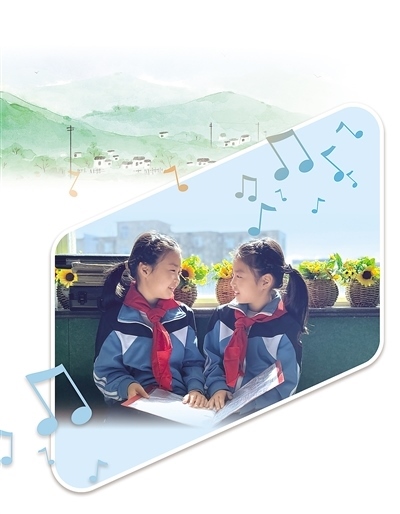 講臺(tái)上,隨著廖光新的雙手向前一打開(kāi),學(xué)生們齊刷刷地唱了起來(lái)?!敖裉焯鞖夂茫フ腋赂拢ㄍ馄牛﹪D……”稚嫩而清脆的聲音瞬間充滿整個(gè)教室,透過(guò)窗戶傳向遠(yuǎn)處的大山。