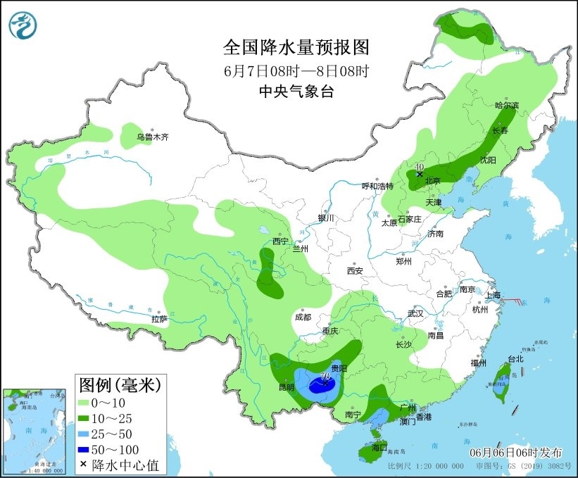 預(yù)計(jì)今天,內(nèi)蒙古中西部和東北部、甘肅東部、寧夏南部、河北北部、北京西北部、四川南部、貴州北部、云南西南部和東北部、廣東南部、廣西南部、海南島、臺灣島大部等地部分地區(qū)有中到大雨,其中,貴州西北部、廣西東南部、廣東西南部等地局地有暴雨(50~90毫米)。