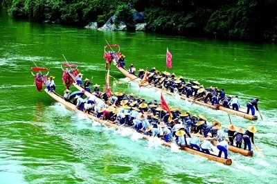 每年農(nóng)歷五月,在貴州省黔東南苗族侗族自治州的清水江流域,當(dāng)?shù)氐拿缱迦罕姸紩?huì)舉辦苗族獨(dú)木龍舟節(jié)。龍舟節(jié)以水上龍舟競(jìng)渡為載體,融合了苗族服飾文化、歌舞文化、飲食文化等,數(shù)百年經(jīng)久不衰,沿襲至今。2008年,苗族獨(dú)木龍舟節(jié)便被列入第二批國(guó)家級(jí)非物質(zhì)文化遺產(chǎn)代表性項(xiàng)目名錄。