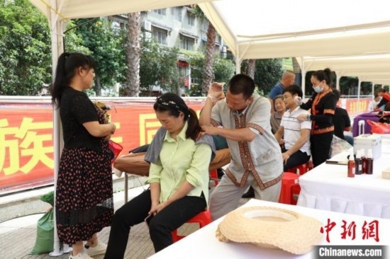 游客在廣西金秀體驗瑤醫(yī)。盤斌 攝