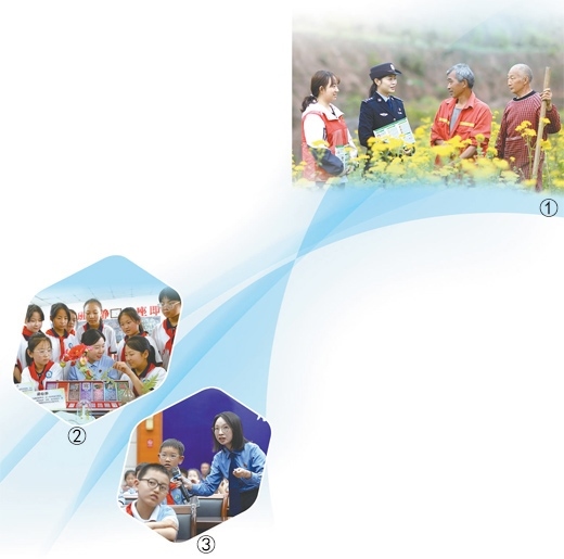圖①:在貴州省赤水市文華街道,民警和禁毒志愿者走進(jìn)田間宣傳禁種鏟毒。王長(zhǎng)育攝(影像中國(guó)) 圖②:河北省邢臺(tái)市平鄉(xiāng)縣司法局工作人員將禁毒知識(shí)帶進(jìn)校園。范欽龍攝(影像中國(guó)) 圖③:浙江省臺(tái)州市仙居縣人民檢察院檢察官向?qū)W生們介紹禁毒知識(shí)。陳登科攝(影像中國(guó))