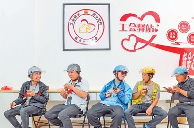 截至目前,我國已建成工會驛站18.42萬個,覆蓋服務(wù)職工群眾1.47億人,平均每天服務(wù)戶外勞動者327萬人次,年服務(wù)超10億人次。除了提供休息如廁、飲水納涼等服務(wù)外,一些地方還不斷豐富工會驛站的服務(wù)內(nèi)涵、延伸服務(wù)鏈條,與街道、社區(qū)等聯(lián)合開展送溫暖、送清涼、送文化等活動,幫助戶外勞動者解決實際困難,打通工會服務(wù)戶外勞動者的“最后一公里”。