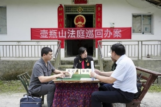 近日,湖南省石門縣人民法院壺瓶山人民法庭將庭審現(xiàn)場(chǎng)“搬”到石門縣南北鎮(zhèn)金家河村,審理了一起宣告死亡案件,為居住在大山深處出行不便的田大爺解決了一樁憂心事。
