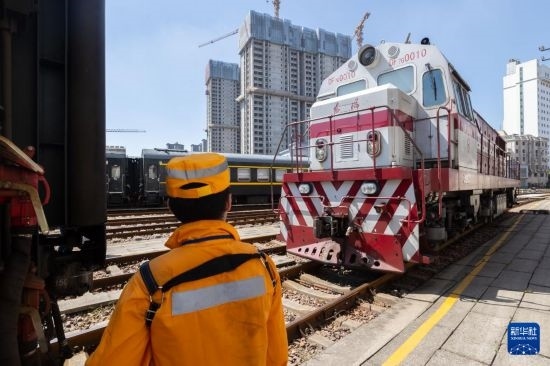 近期,上海持續(xù)高溫天氣。在中國鐵路上海局集團(tuán)有限公司上海站運(yùn)轉(zhuǎn)車間,調(diào)車員冒著高溫堅守崗位,確保暑運(yùn)列車運(yùn)行安全。