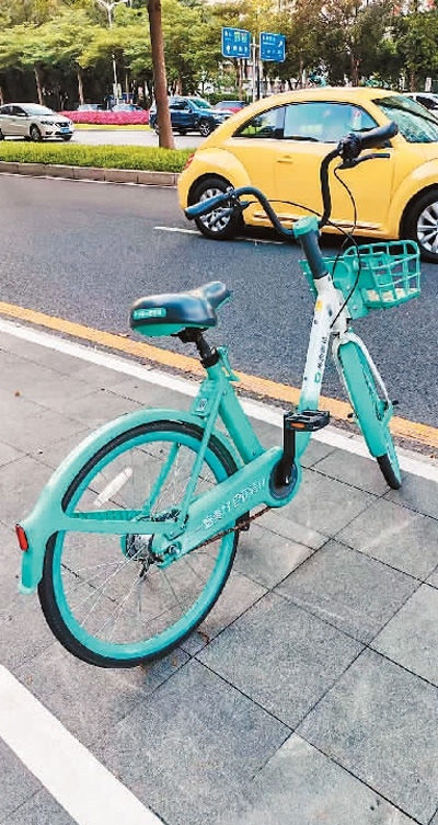 廣東深圳福田區(qū)深南大道上停放于劃定區(qū)域的共享單車(chē)。本報(bào)記者 盧澤華攝