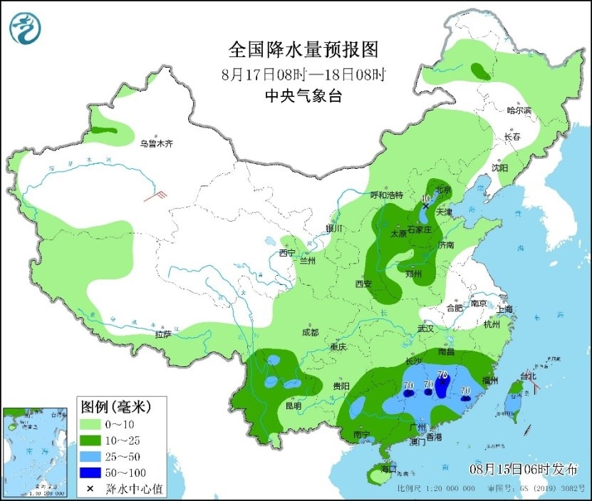 未來(lái)三天,江南南部、華南及四川盆地等地部分地區(qū)有分散性強(qiáng)降雨,并伴有強(qiáng)對(duì)流天氣,降雨強(qiáng)度大;西北地區(qū)東部、內(nèi)蒙古、華北、東北地區(qū)、黃淮等地有一次降雨過(guò)程,青海、甘肅、寧夏、陜西等地部分地區(qū)已出現(xiàn)較強(qiáng)降雨,需防范持續(xù)降雨和局地短時(shí)強(qiáng)降雨可能引發(fā)的次生災(zāi)害。由于副熱帶高壓減弱和降雨鋪展,高溫明顯減弱。高溫主要集中在四川盆地,湖北、湖南、浙江、江蘇等地雖有高溫,但范圍較小。