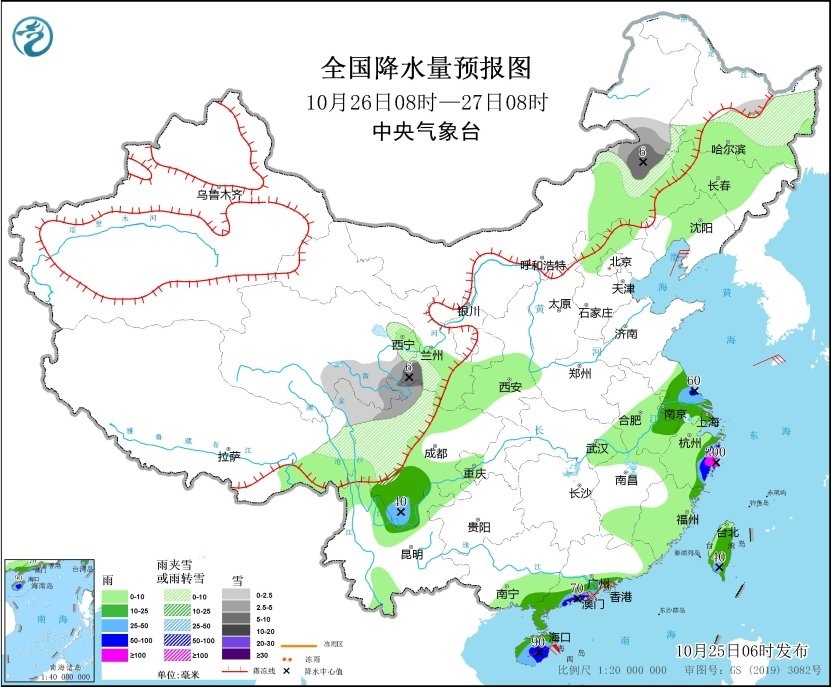 預(yù)計10月26日,江蘇中南部、安徽東南部、上海大部、浙江東部、廣東西南部沿海、海南島、臺灣島大部等地部分地區(qū)有中到大雨,其中,江蘇中部、浙江東部沿海、廣東西南部沿海、海南等地部分地區(qū)有暴雨或大暴雨。