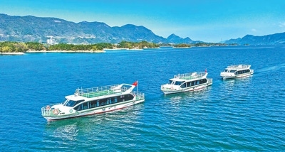 白色游艇飛馳,水花濺躍,劃出一道漂亮的弧線……碧綠的湖面上只有水聲浪聲,卻沒聽到發(fā)動機(jī)轟鳴聲。