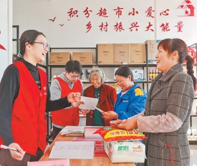 德化人心江西省瑞昌市高豐鎮(zhèn)建立文明積分制度,村民參加志愿服務(wù)等活動可以獲取積分,并到“鄉(xiāng)風(fēng)文明超市”兌換生活日用品。魏東升攝(人民視覺)