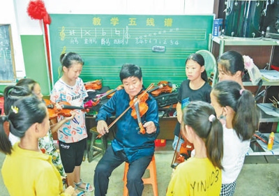 教學(xué)漸漸步入正軌后,張玉立還將支教的范圍擴(kuò)大到其他4個(gè)同樣偏僻的鄉(xiāng)鎮(zhèn)。山路崎嶇,往返山間,張玉立樂(lè)此不疲?!啊亚俾曀瓦M(jìn)大山’不僅能夠豐富孩子們的生活,還可以幫助他們走出大山。”張玉立說(shuō),經(jīng)過(guò)一段時(shí)間的教學(xué)以后,自己開(kāi)始有意識(shí)地挑選對(duì)小提琴有興趣、有天賦的孩子,成立小提琴班,利用課外時(shí)間進(jìn)行專門(mén)訓(xùn)練。