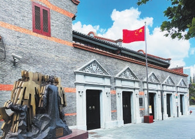 由紫銅與黃銅鍛造而成的群像雕塑,將中國勞動組合書記部舊址從高架橋下的成都北路,清晰地標(biāo)刻出來——一幢青灰磚墻、由5個門洞組成的石庫門建筑靜立街角。1921年8月11日,中國共產(chǎn)黨誕生不到一個月,在這里成立首個領(lǐng)導(dǎo)全國工人運動的總機(jī)關(guān),拉開了中國工人階級有組織斗爭的序幕。