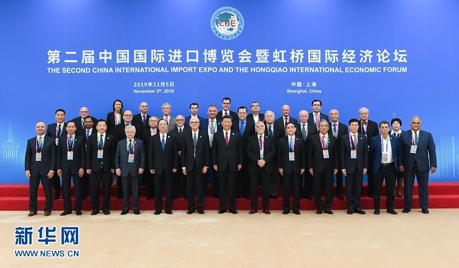 開幕式前,習(xí)近平同外方領(lǐng)導(dǎo)人集體合影,并親切會見世界500強企業(yè)家代表、出席“70年中國發(fā)展與人類命運共同體”論壇外方智庫媒體代表、出席世貿(mào)組織小型部長會議外方部長和代表團團長。