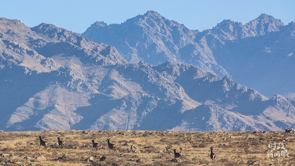 △巖羊是國家二級保護動物,因攀登本領高超被譽為“峭壁精靈”。《時政新聞眼》恰巧捕捉到它們跳躍的身影。(總臺央視記者陶鵬飛拍攝)