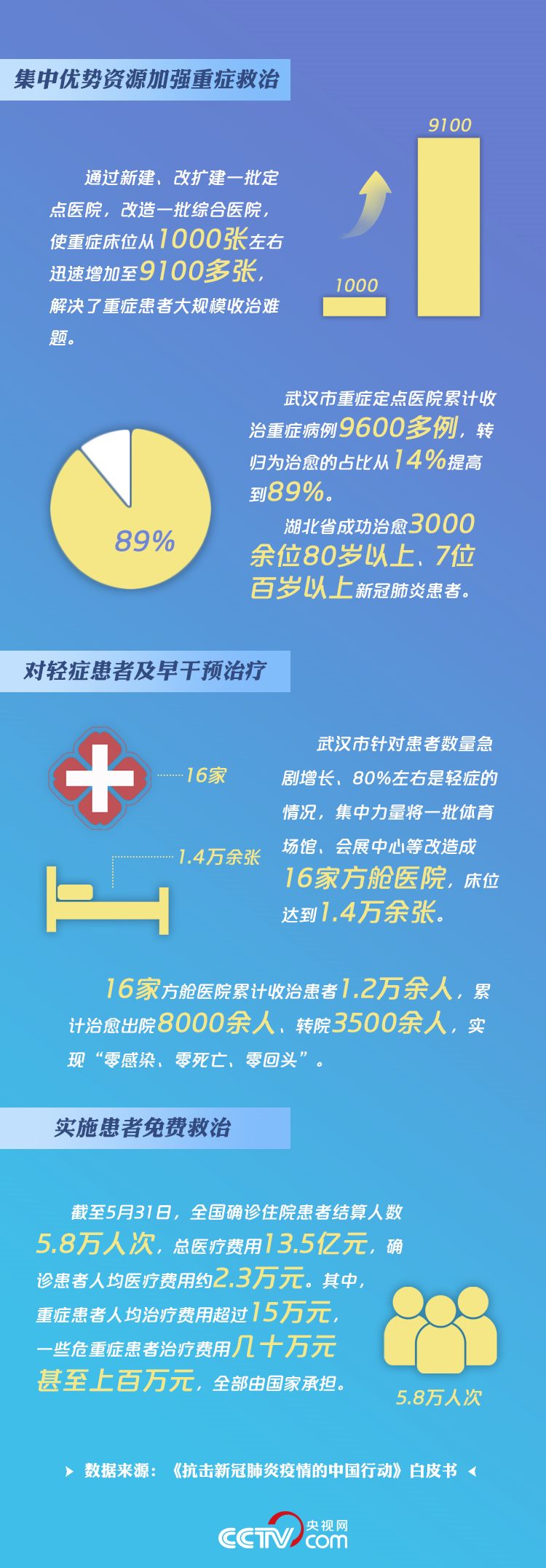 “人的生命只有一次,必須把它保住?!薄盁o論年齡再大、病情再重我們都絕不放棄?!薄安幌Т鷥r,要讓患者用上最好的設備?!币粋€個戰(zhàn)“疫”成果的大數據,無不彰顯了總書記憂民、愛民的赤子情懷。