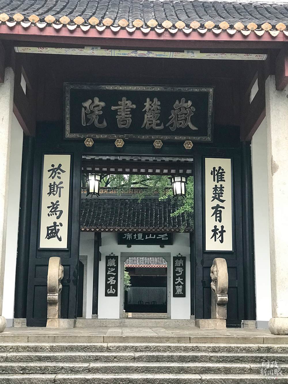 △岳麓書院是中華文化的重要地標(biāo),門前這幅對聯(lián)“惟楚有材于斯為盛”分別出自《左傳》和《論語·泰伯》。(總臺央視記者石偉明拍攝)