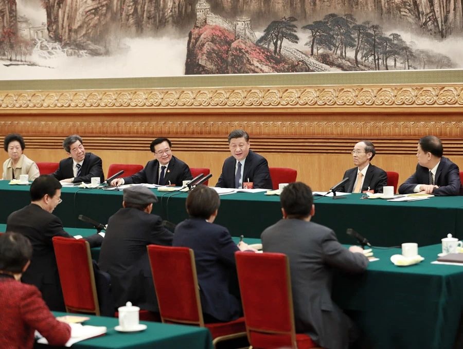 △2019年3月8日,習(xí)近平參加十三屆全國人大二次會(huì)議河南代表團(tuán)的審議。