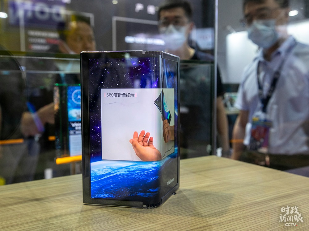 △2020國際顯示技術(shù)及應(yīng)用創(chuàng)新展7月在上海舉行,這是一款柔屏手機(jī)。