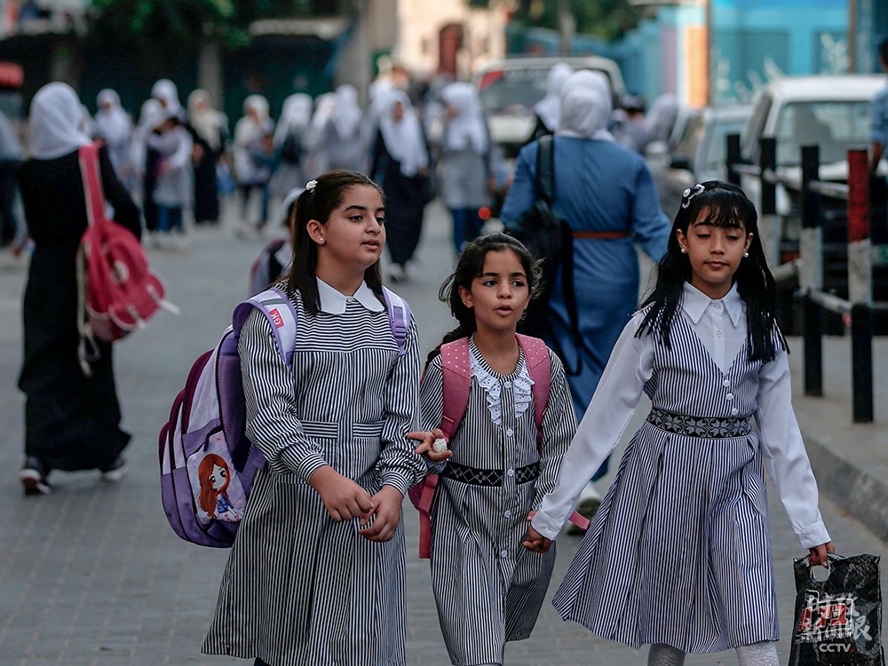 △巴勒斯坦加沙地帶近日開(kāi)學(xué),學(xué)生們到聯(lián)合國(guó)救濟(jì)和工程處開(kāi)辦的學(xué)校上課。