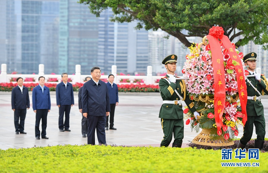10月14日,深圳經(jīng)濟特區(qū)建立40周年慶祝大會在廣東省深圳市隆重舉行。中共中央總書記、國家主席、中央軍委主席習(xí)近平在會上發(fā)表重要講話。這是當(dāng)天下午,習(xí)近平來到蓮花山公園,向鄧小平同志銅像敬獻(xiàn)花籃。 新華社記者 李響 攝