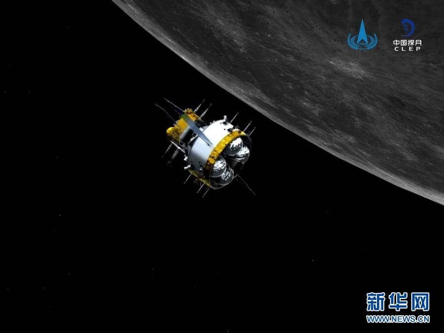 軌返組合體與上升器分離前模擬圖。記者從國家航天局獲悉,北京時間12月6日12時35分,嫦娥五號軌道器返回器組合體與上升器成功分離,進(jìn)入環(huán)月等待階段,準(zhǔn)備擇機(jī)返回地球。新華社發(fā)(國家航天局供圖)