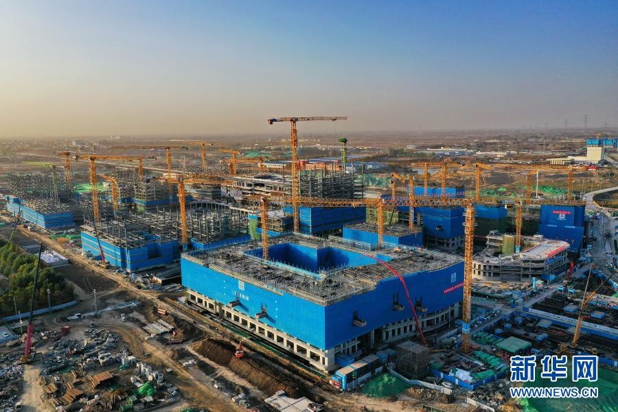 這是11月6日拍攝的河北雄安新區(qū)商務(wù)服務(wù)中心建設(shè)現(xiàn)場(無人機(jī)照片)。新華社記者 牟宇 攝